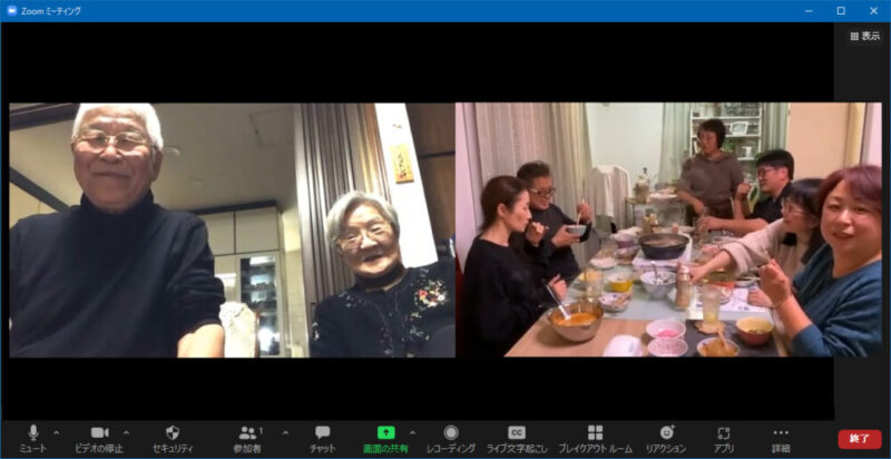友達と一宮に帰ったった順ちゃんちツアーの動画をみんなで見ながら、飲もう!ということで、メンバーがうちに集結! Zoomの画面を50インチテレビの大画面に映して、一宮と埼玉とがオンラインで繋がった、ひとつの会場で飲んでいるような雰囲気を作りました... -