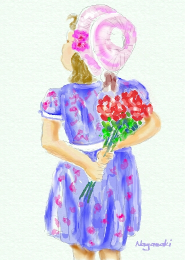 ゴールデンウイークも後半を迎えました この時期は何処へ行っても大変ですね 母の日を前に 子育て中のお母さん方と子育てを終えられたお母さん方へ日頃お世話に なっているお礼に「花束を持った少女」の絵を添えて お礼とします 『いつもお世話になっ... -