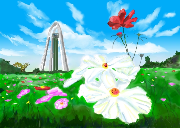 みなさん こんにちわ ようやく新パソコンが 70%程使えるようになりました 爽やかな秋を感じます 一宮の138パーク 高い塔のある公園です コスモスがきれいです