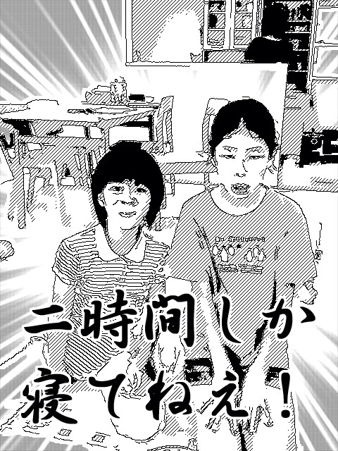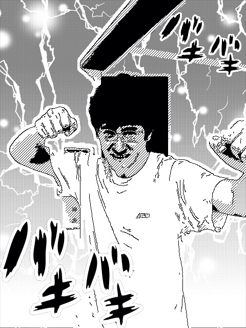 iPhoneの面白いアプリを見つけました。 「漫画カメラ」です。 撮影した写真を劇画風に加工してくれます。 あはは・・・・仲間内でも、はまってる人続出中! -
