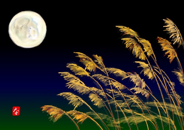 今日は二日続きの好天に恵まれました 夜空を見上げると綺麗なお月様が見えます ネットのサイトで中秋の名月の写真を見つけてさっそく描いてみました 台風の影響で天気に恵まれないかもしれないので その時のために送ります 本物が見られるといいですね -