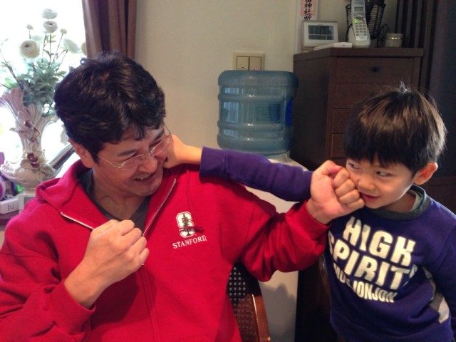 元旦は、お屠蘇を飲んで、雑煮を食べ、お腹がいっぱいになったところで、ハルトとボクシングの練習。 そして、百花・ハルトを連れて、公園で遊んできました。 ついでに、ハルトの顔で遊んでみました。 -