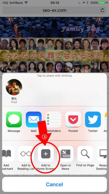 iPhoneのホームスクリーンにファミリーブログのアイコンを置く方法