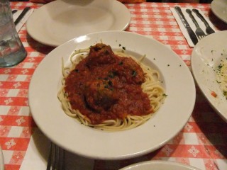 100年の歴史を持つSpagetti Houseの味は 差ほどではありません 建物は古い倉庫だったものを利用し室内は鉄道駅舎を思わせるユニークなものでした スパゲッティ専門で一度に200人以上は入れる大型のお店でした