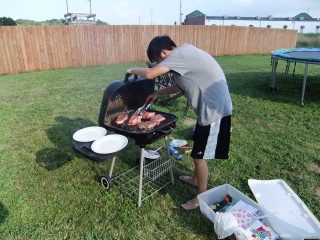 これまで参加しなかった健太郎がお肉の焼き方として頑張ってくれました 楽しい様子を送ります