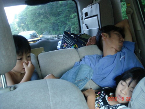 そのもうひとつ下の画像:疲れきって、熟睡のパパとモモ。この直後、ハルトも爆睡でした。