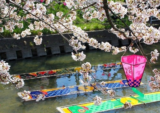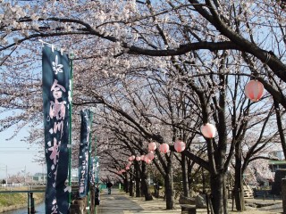 桜の花と川の水、そして、のぼりの鮮やかさが、なんとも日本的でいいですね。