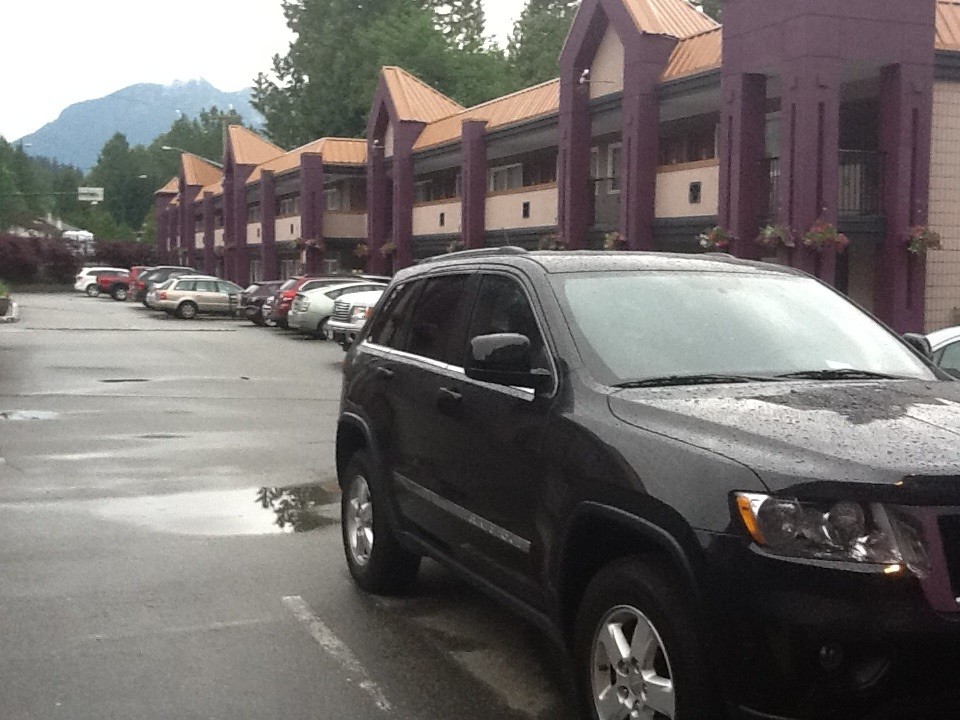 Iphoneとipadが同期しないので今朝玄関先から愛車?のチェロキーと宿泊先ノースバンクーバーホテルの一部を写した次第。wifiは無料だが電波が弱いためスムーズなアクセスは出来ない。この投稿はIpadのみで行ないます。本日は小雨でかなり冷え込んでいる