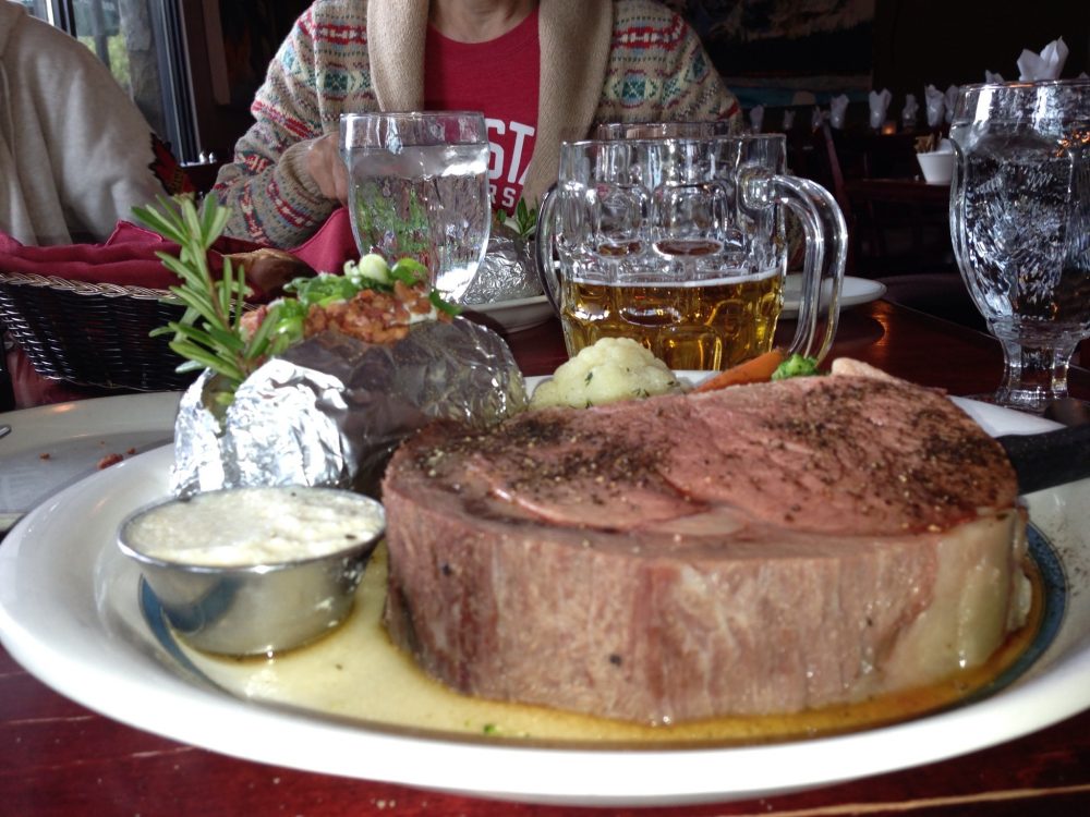 午前中はエドモントンの世界最大というモールに立ち寄りひるすぎにジャスパーへと出発。途中で家を運んでいるトレーラーに遭遇。スケールの大きさに吃驚!町にちかづいたところで山を一枚。5時頃宿に着き一同空腹につき念願のアルバータ牛のプライムリブを注文。3人は260g、小生は約500g近く(写真のとおり)を食し一同満腹で満足の一日でした。