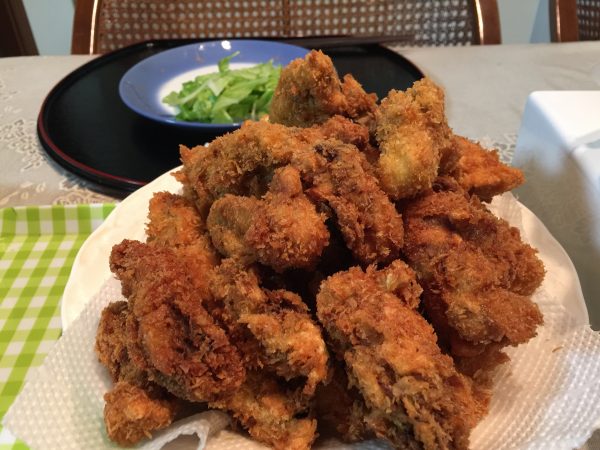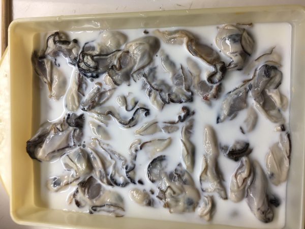 礼子に差入れして貰った牡蠣の話です。セル牡蠣20個は焼き牡蠣にして2日で平らげました。別途の剥き牡蠣ですが100個近くあり、全てをフライにしようと思い圭恵子と2人で1時間かけて処理をしました。牡蠣は海のミルクなので牛乳に浸して通常のフライにしたけれど揚げている途中で2人で15個位味見。美味美味を連発しながら〜