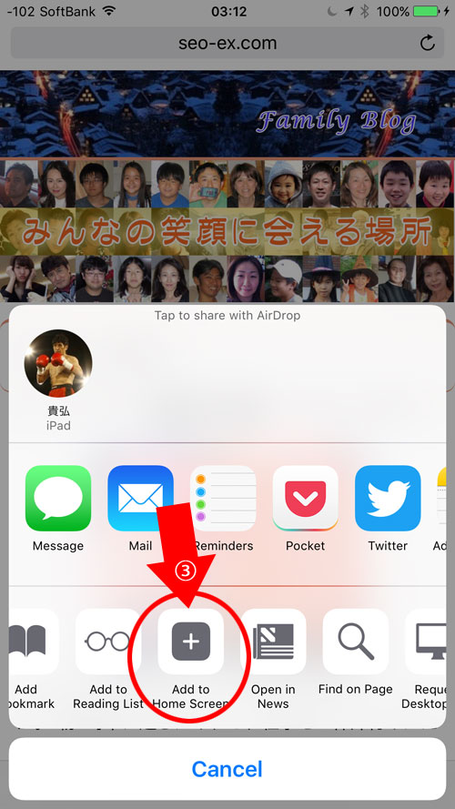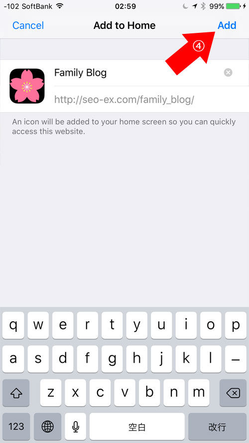 ファミリーブログのアイコンを iPhoneのホームスクリーンに置いて、すぐにアクセスできるようにする方法をお伝えします。