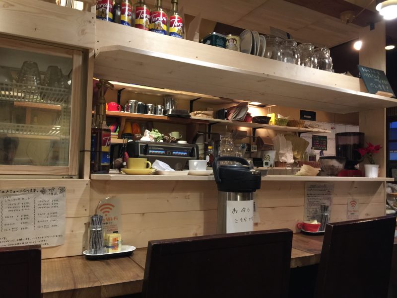 マスターが、年末に日曜大工で作った棚は、店内を明るい雰囲気に変身させていました。