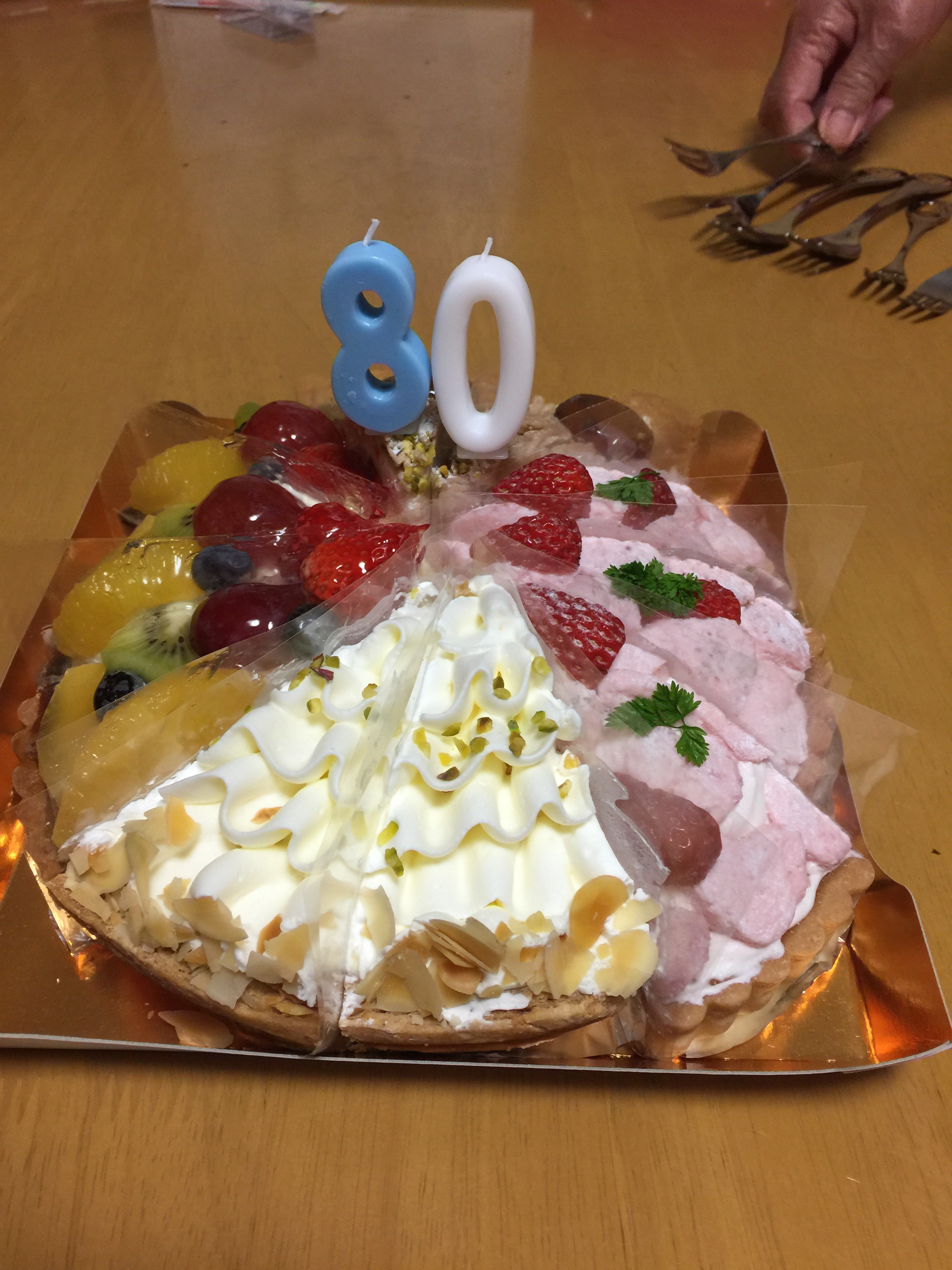 80歳の誕生日ケーキは見たことのないようなビックリの豪華さです おめでとうございました。