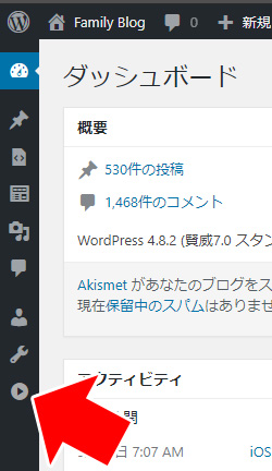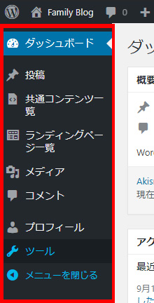 左のメニューが隠れていたら、一番下のアイコンをクリックして下さい。
