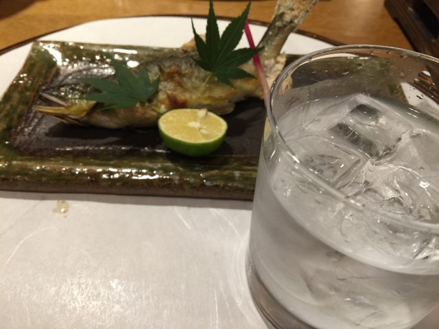 焼き芋の焼酎をロックでちびちびやりながら、次々と運ばれてくる料理に舌鼓。
