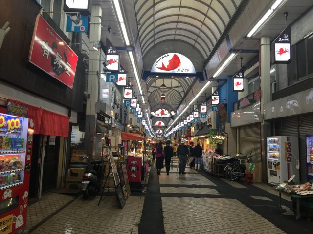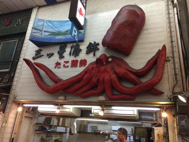 市場をブラブラと歩いて、タコを買ったり干物を買ったり。