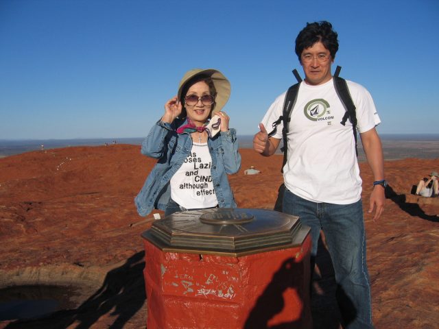 エアーズロックを走ってもっちゃんは、サングラスがズレたまま記念撮影。