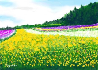 北海道 富良野、きれいでしたよね。 ラベンダーの香りに包まれて散歩をして、ラベンダーアイスを食べた思い出は、忘れられません。 それにしても、上の絵、奥行きがとてもリアルに表現されていて、凄いですね。 カラフルな花畑と、少し雲の多い空とのコントラストが、見事です。 ログインして返信する
