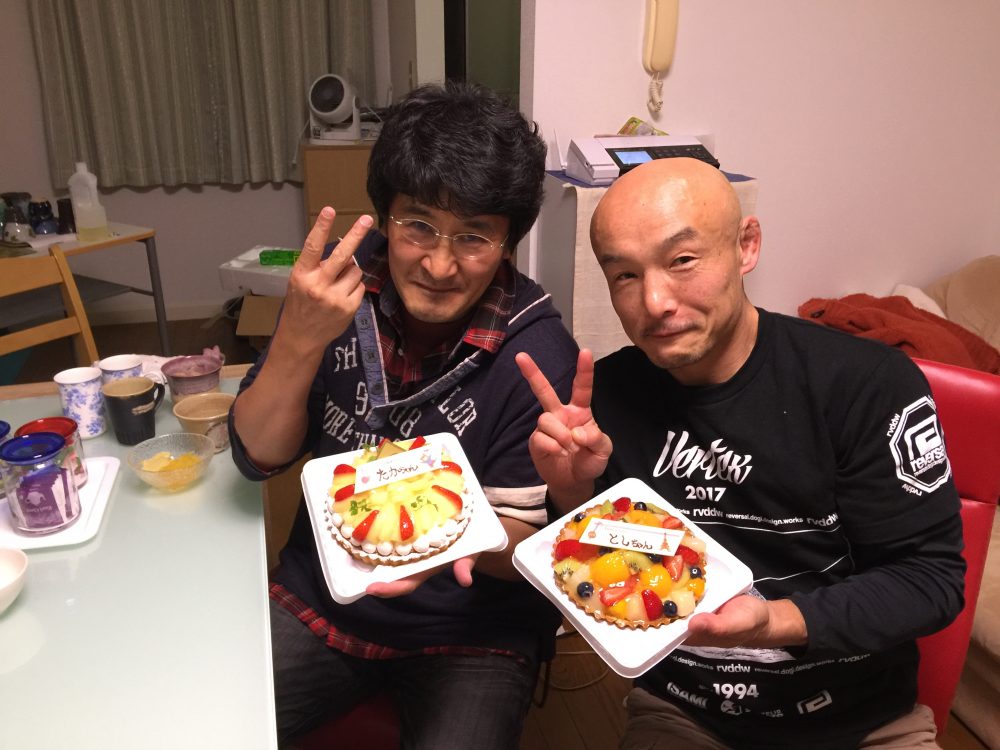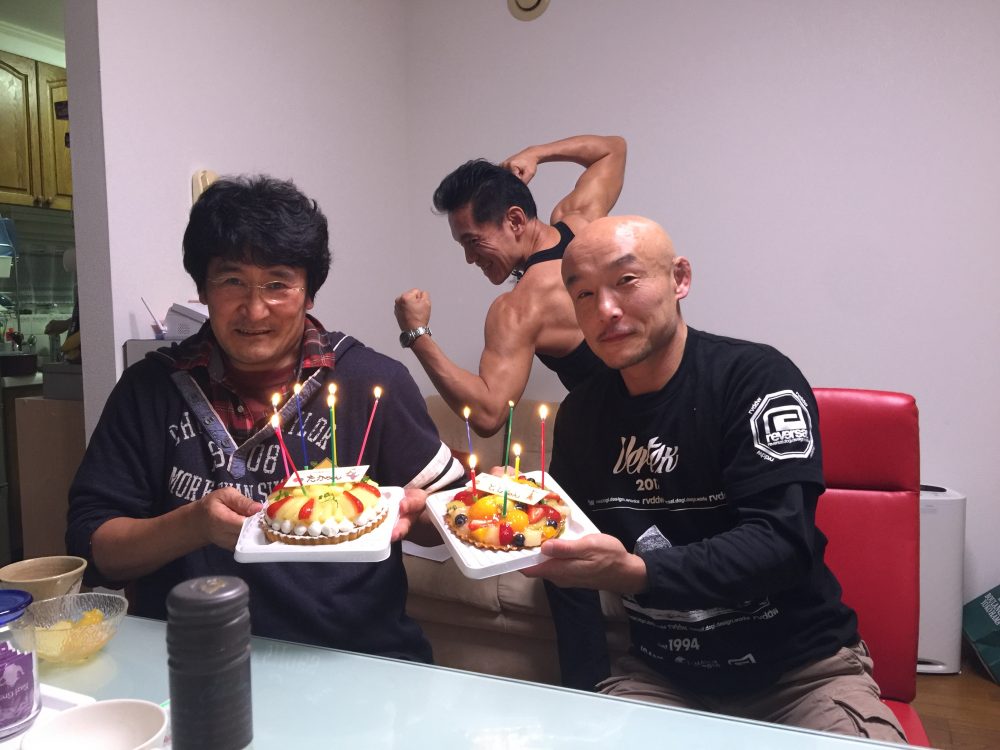 僕の誕生日祝と、真ん中のおっさんのお祝いです。