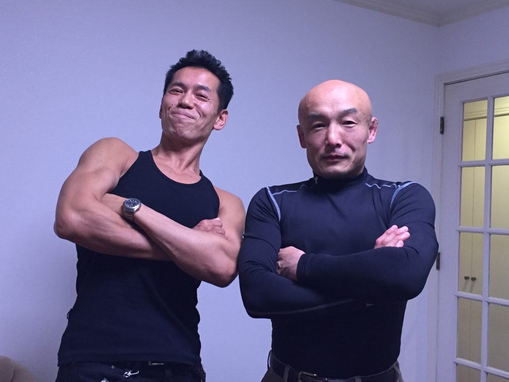 後ろでポージングしているのは、来年の2月にナイスミドルのライト級のタイトルマッチをする選手。
