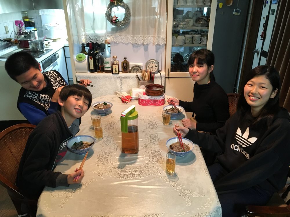 今日一日ずっと食べ続けて、みんな胃がもたれているので、夕ご飯は年越し蕎麦。