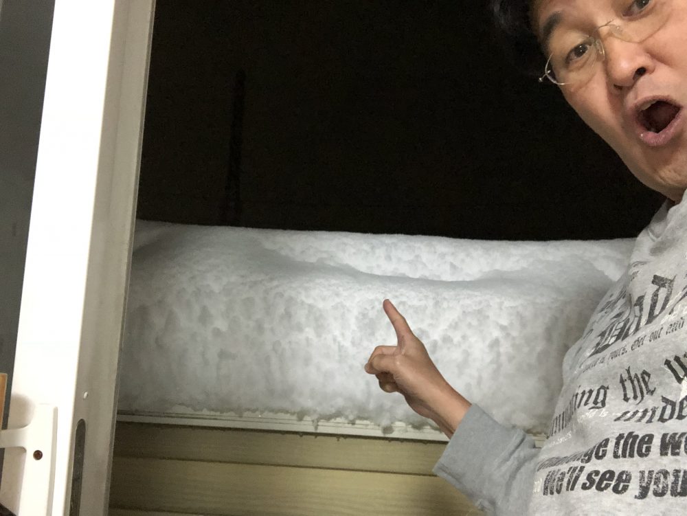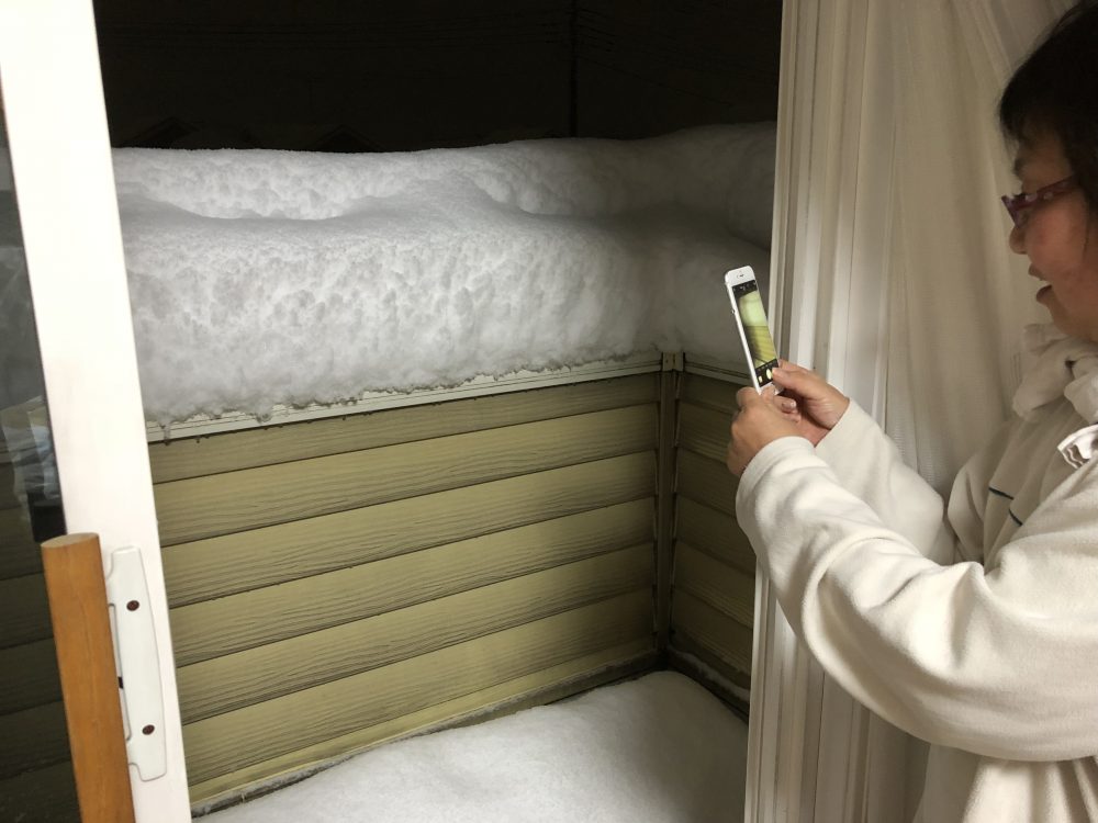 夜になっても雪の勢いは止まらず、二階のベランダに出てみてビックリ!