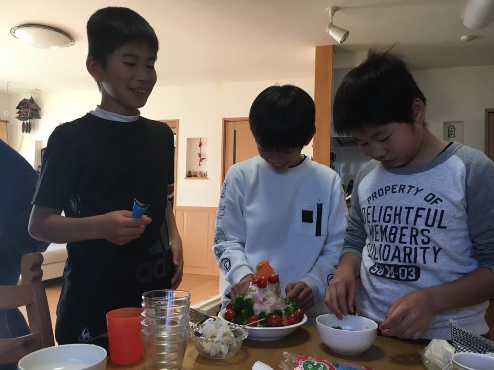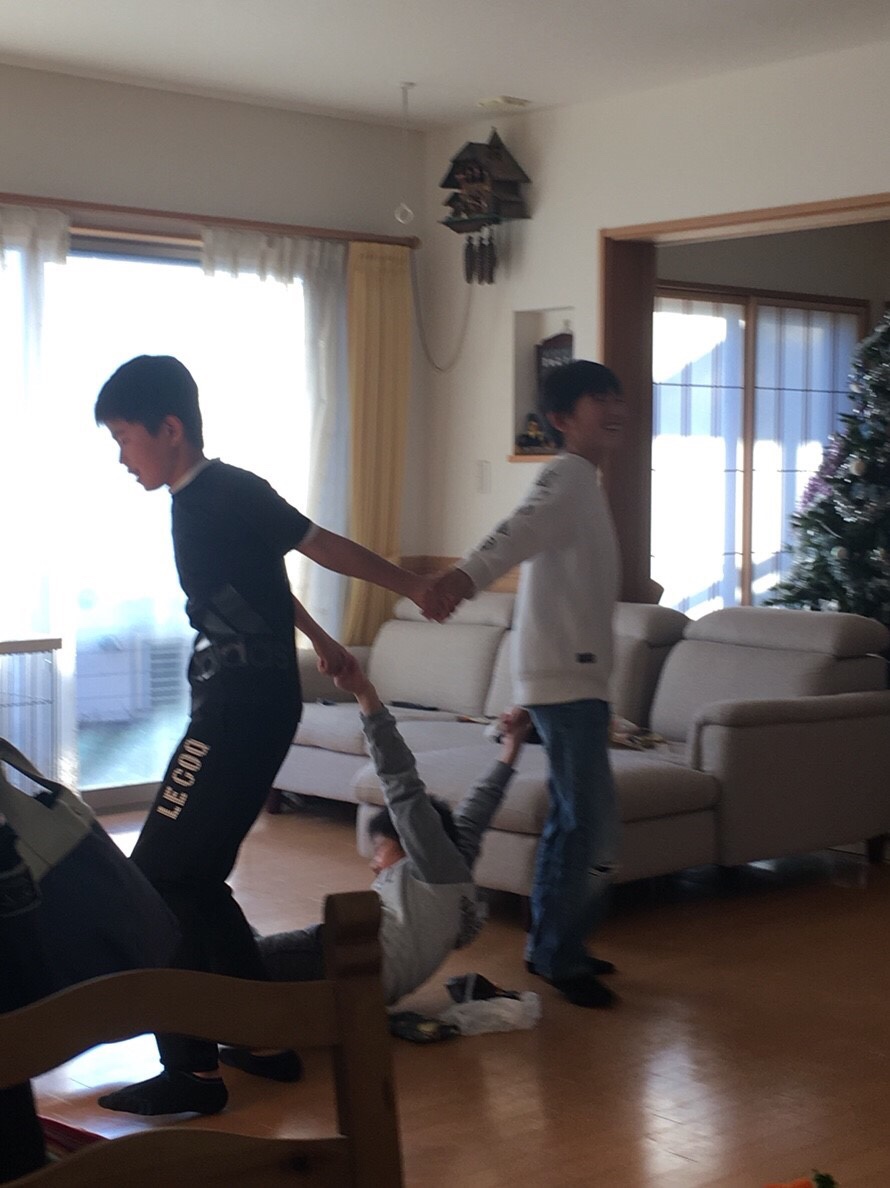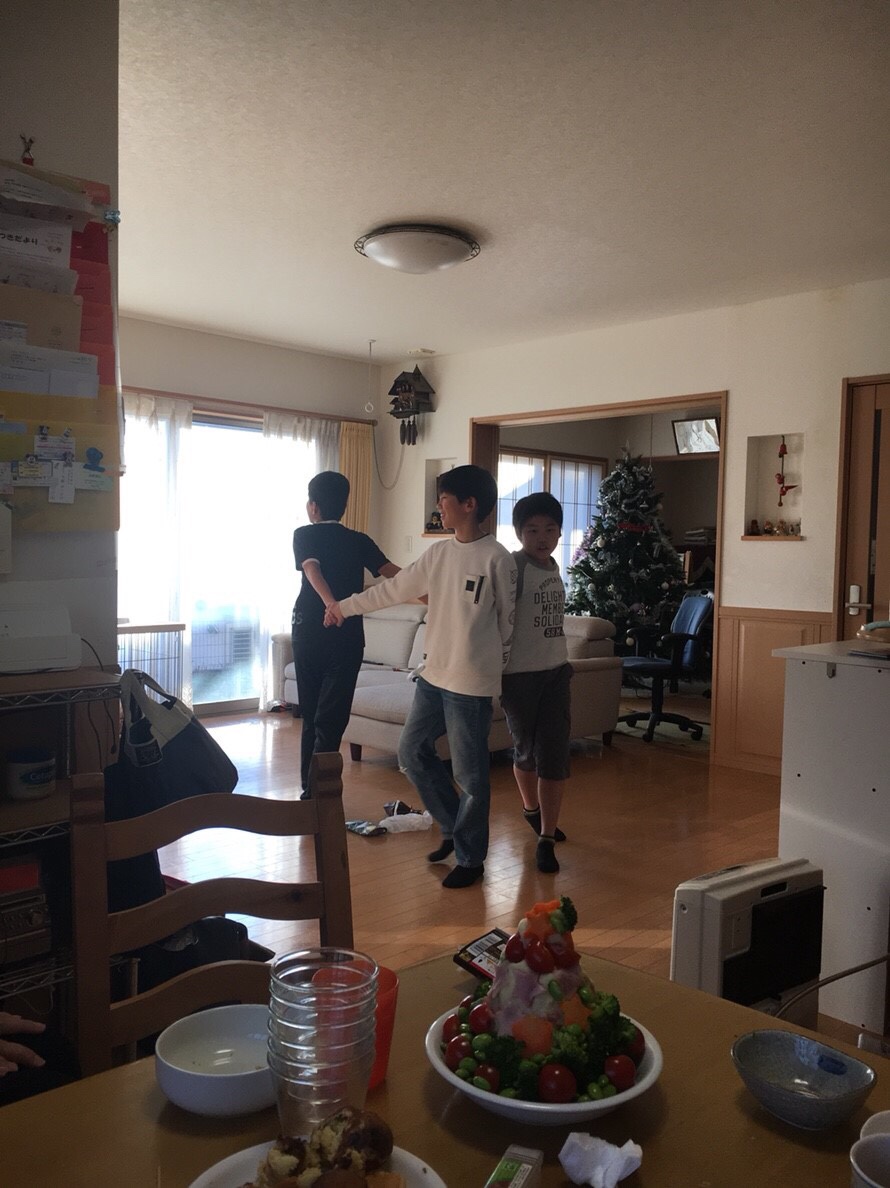 友達と賑やかにプレゼント交換やスイーツ作りなどをした後、ジェーボード、鬼ごっこ、とにかくじっとできないお年頃^^;