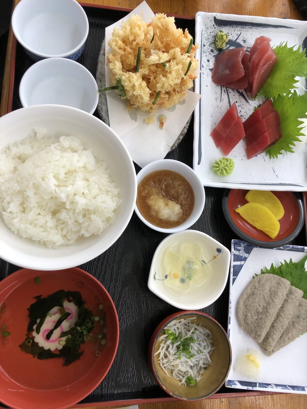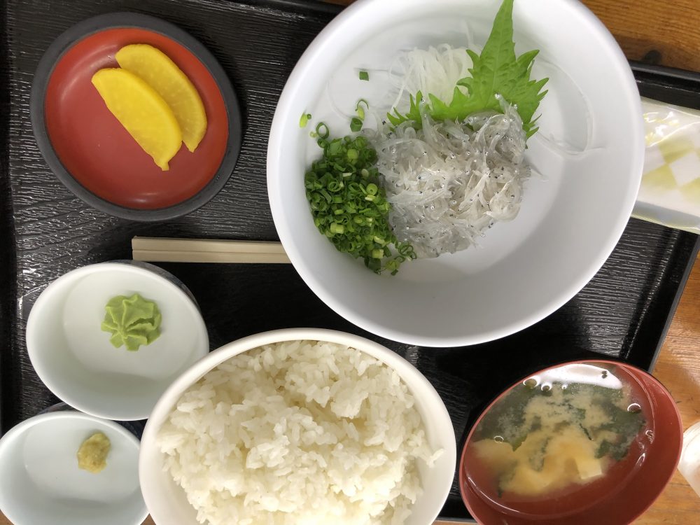 我が家の庭に可憐な梅の花が咲いた日に貴弘夫妻の圭恵子の傘寿小生の誕生日を兼ねた招待旅行に出かけました。出発の時から名古屋までは雨が降っていましたがそれ以降は雨も☂️止み焼津に着いた時は晴天になりました。貴弘達と待ち合わせた小川港の魚河岸食堂で昼食、流石漁港だけあって新鮮な魚料理が一杯で大盛りのご飯と圭恵子からの余分なご飯で生シラス定食。その他は刺身定食、貴弘はマグロのステーキで昼食を満喫。食後は富士山を展望しギネスに載っている世界で一番長い木製の橋🌉播磨橋を渡って来ましたが風が強くなったので途中で引き返し宿舎の汀亭に直行。