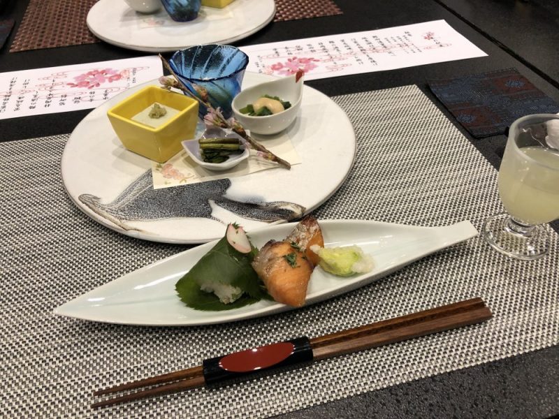 鰆の酒蒸しにも山菜やたけのこが。