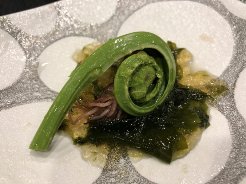 ホタルイカのジュレがけには、こごみが乗せられています。