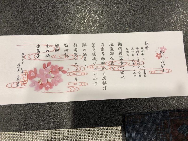 各席に置かれた献立を見ながら、料理を待ちます。