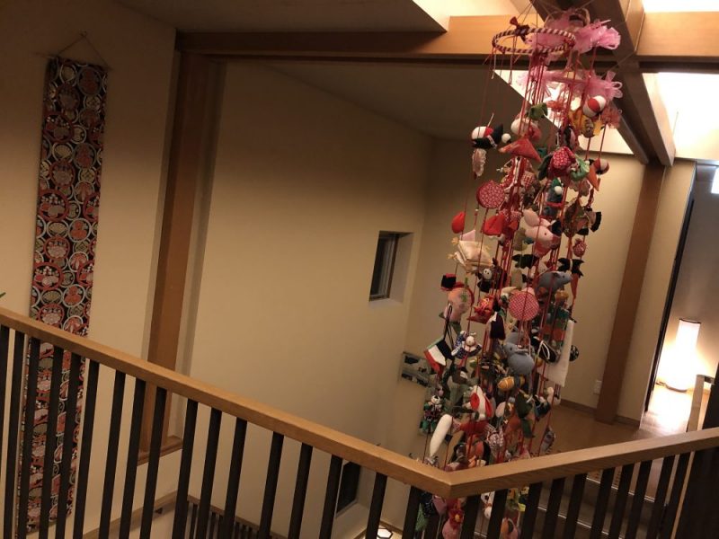 階段のところには、つるし雛がつるしてありました。