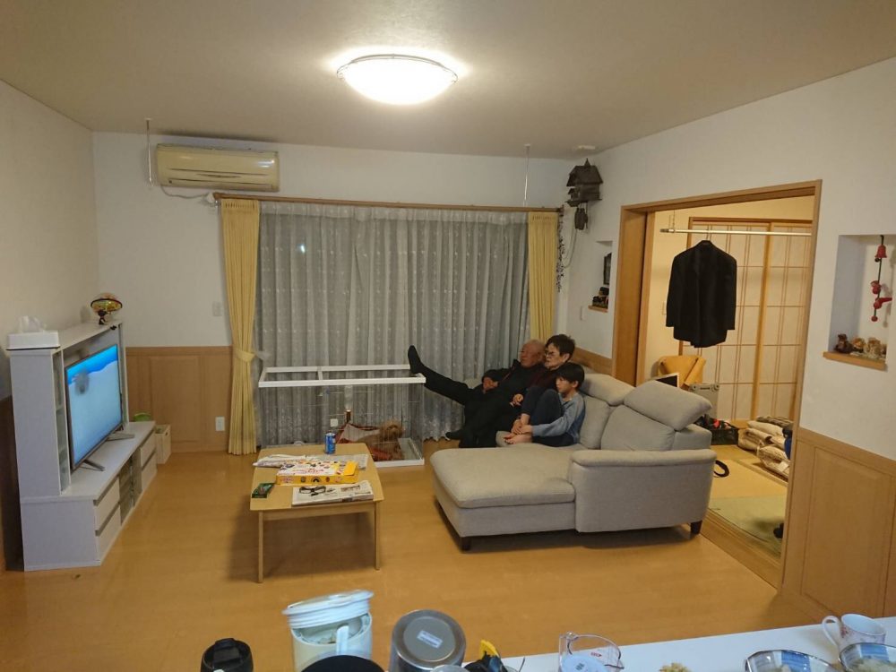その後はのんびりと、ハルトが好きなTV番組DASH村を見ていたのですが、気づくとギュウギュウ詰めでソファに三人が座っていて笑えました(^^)