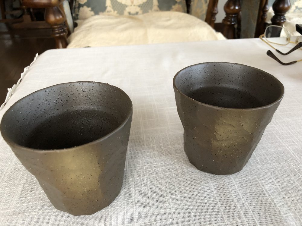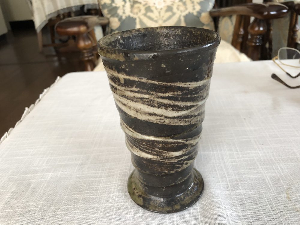 昨日は福厳寺で7時からお施餓鬼法要なので行って来ました。ついでに先日小生の茶碗が損壊して圭恵子が近所のスーパーで代わりを買ってきました。日本製とありましたが気に入らないので小牧から多治見へ行き更に土岐まで茶碗を探しに行って来ました。小生はマイ茶碗は磁器ではなく陶器が好きで特に美濃焼の志野がお気に入りです。手頃なものがなく探していたら自分の好みにピッタリの雪志野に巡り会いました。たかが茶碗と言うけど毎日2〜3回年に千回近く手に持つ物ですから矢張り気に入った物が欲しかったのでしかも作家物でしたので躊躇なく購入した次第。因みに作家は坪井俊憲です。4500円もしましたが安いか高いかは人の思い次第ですよね。毎日、口にする物ですから間違っても中国産は使わないようにして下さい。そして赤や青の鮮美色の物も鉛毒等が溶けてくるので厳禁です。今朝と昼に使いましたが重さ手触り全体の感触が抜群です。もし割れたら金継ぎ(きんつぎ)をすると又一段と深みが出てくるので楽しみにしています。最初な米の研ぎ汁で20分位沸騰させて使います。長くなりましたがついでに焼酎、酒に合う器も購入しましたので写真公開です。下は貴弘から貰った小生お気に入りの焼酎コップです。味が違いますよね!