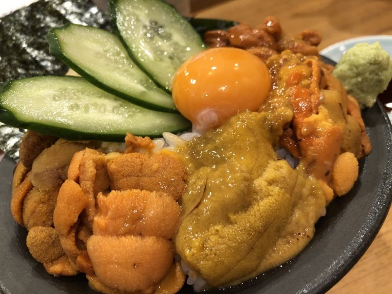うに虎という、うにの専門店で、うにの食べ比べ丼を注文。
