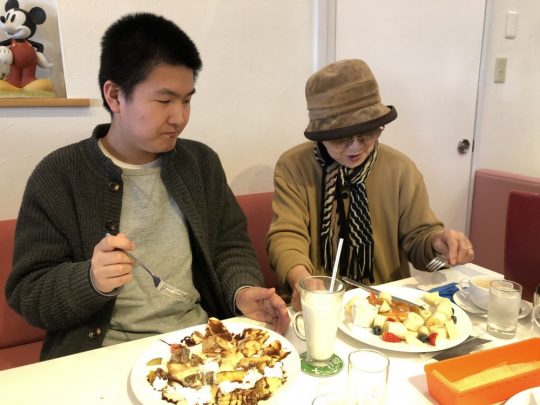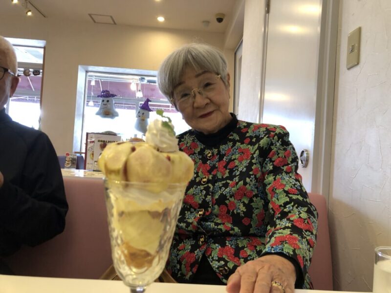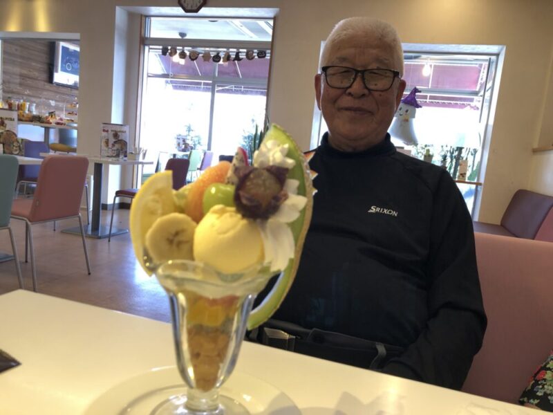 翌日は、おじいちゃん、おばあちゃんと一緒に、セリーヌでフルーツパフェを楽しみました。
