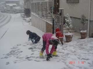 伯父さまのブログのコメントとして書こうと思ったのですが、画像を入れたかったので、新規投稿にしますね。あの日は子供にとっては最高の一日だったようです。16日は家で雪合戦をしたり、雪だるまを4つもつくりました。17日は百花が学校でかまくらも作ったようです。最近はなかなかまとまった雪が降らないので、私もワクワクしちゃいました。
